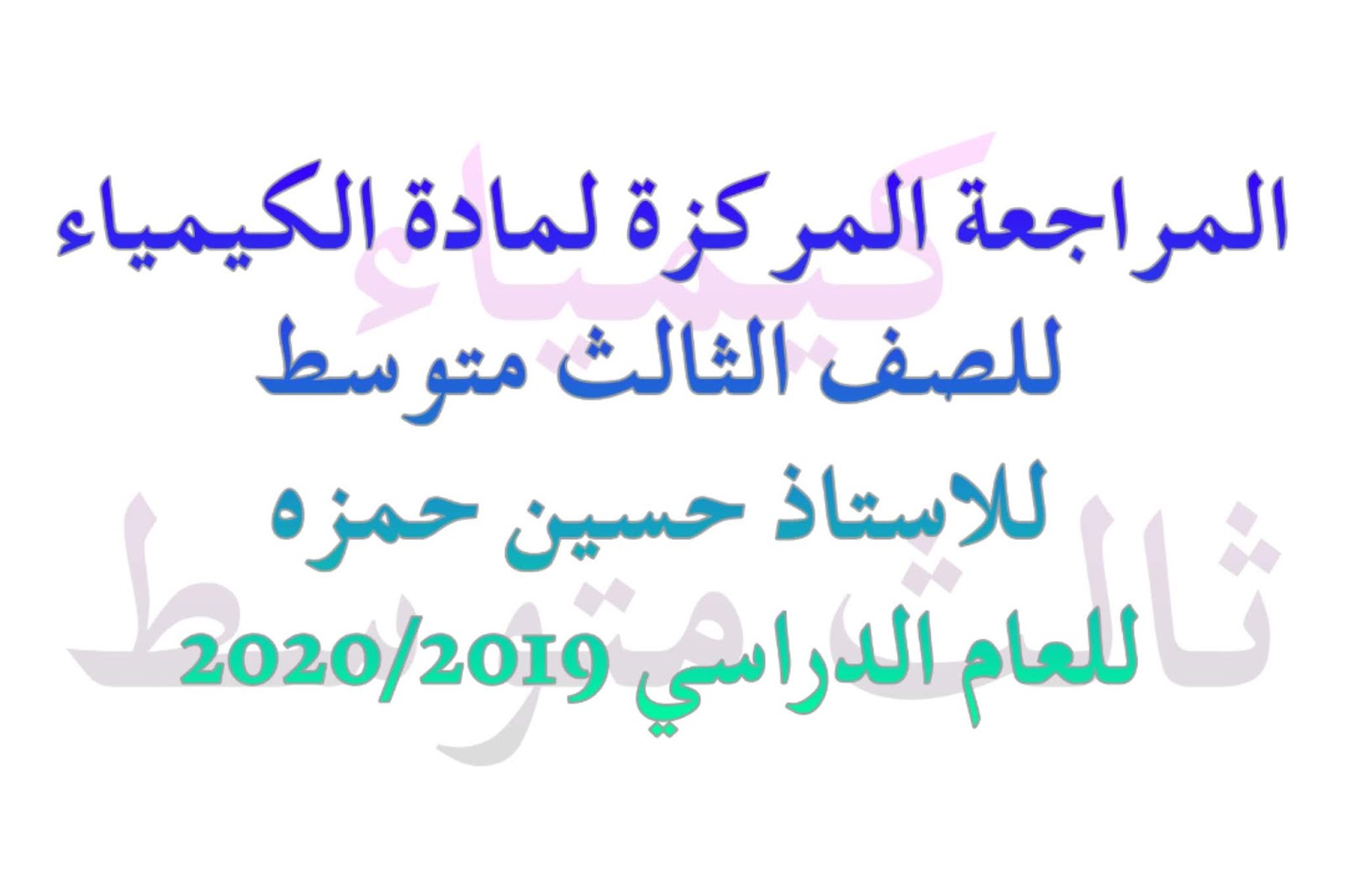 المراجعة المركزة لمادة الكيمياء للصف الثالث متوسط للاستاذ حسين حمزه للعام 2020 ملازم Pdf Kn