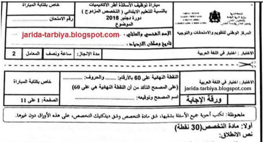 مباراة التعاقد دجنبر 2018 اختبار مادة اللغة العربية لسلك التعليم الابتدائي عناصر الاجابة